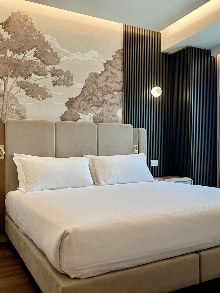La suite è dotata di letto matrimoniale, può ospitare una culla su richiesta e, grazie alla zona living con divano , è ideale per famiglie fino a 4 persone.