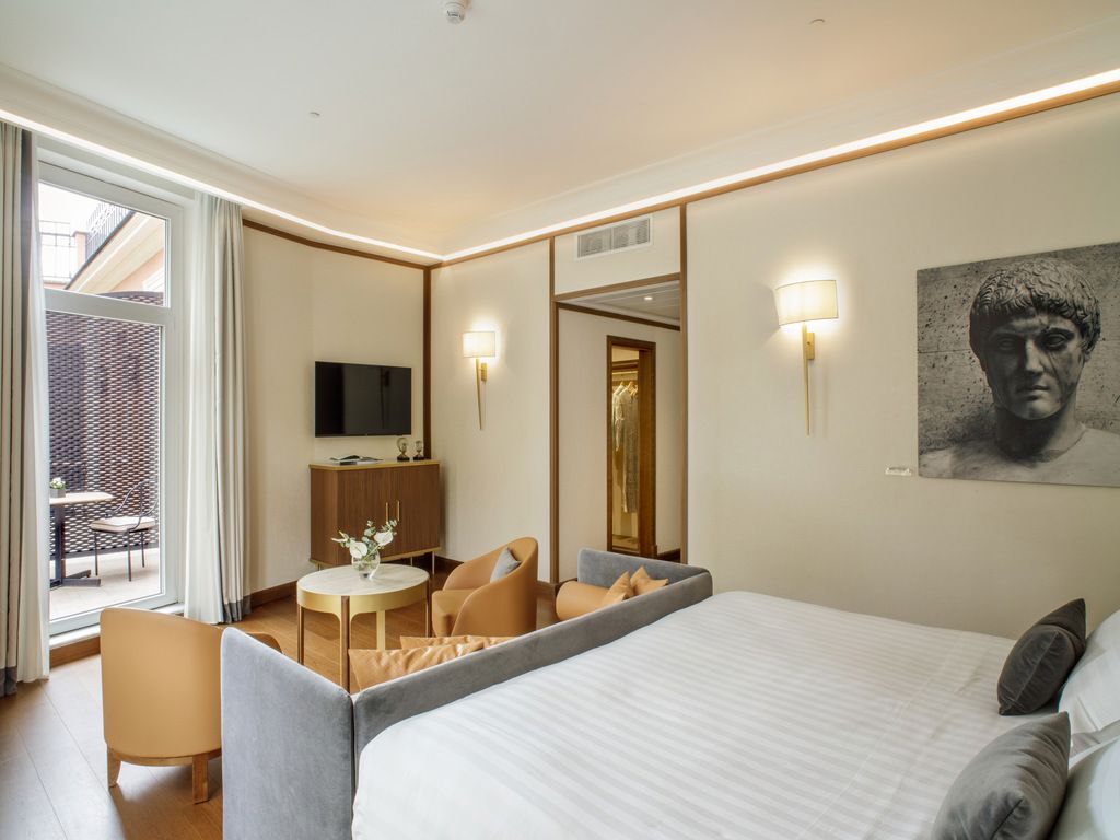 Con una superficie a partire da 37 mq, l’Open Suite Dolce Vita offre spazi ampi e unici, arricchiti da cabina armadio, balcone e terrazzino affacciati su Via Veneto.