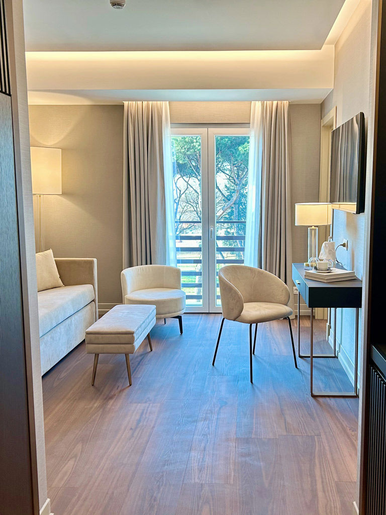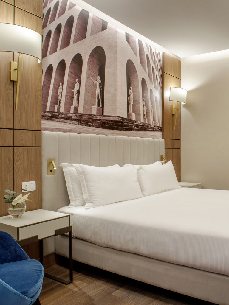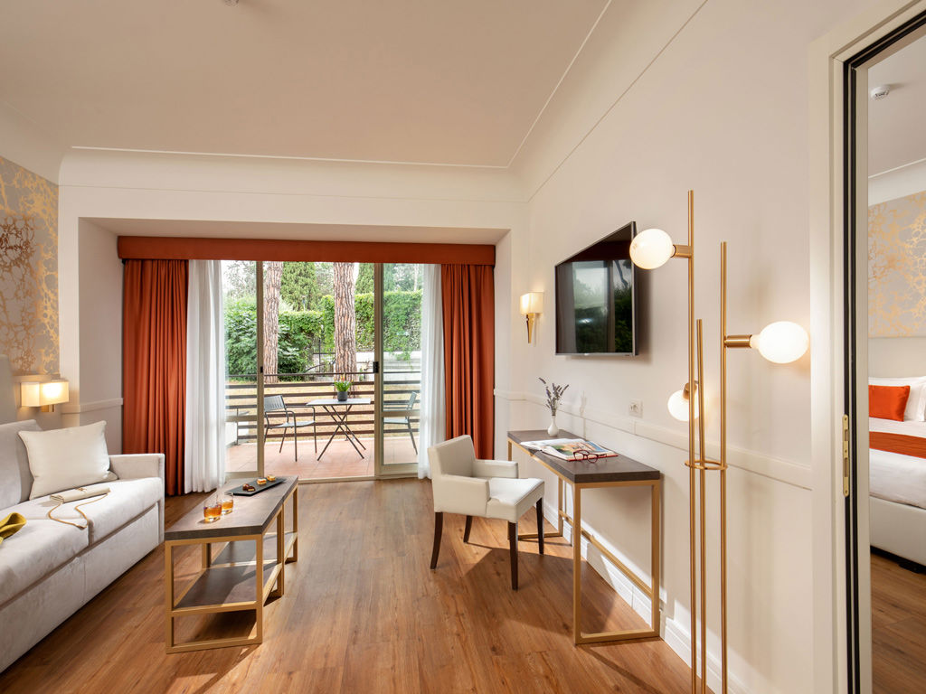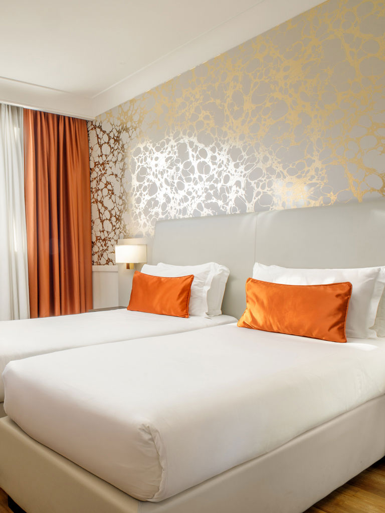 Pregiati materiali italiani e arredamenti funzionali con elementi di design; colori caldi in armonia con la hall e le aree comuni, ampie terrazze e giardini, che alcune camere e suite hanno ad uso privato, sono la soluzione ideale per un soggiorno di lavoro o di piacere immersi nel verde e nell’atmosfera della città.