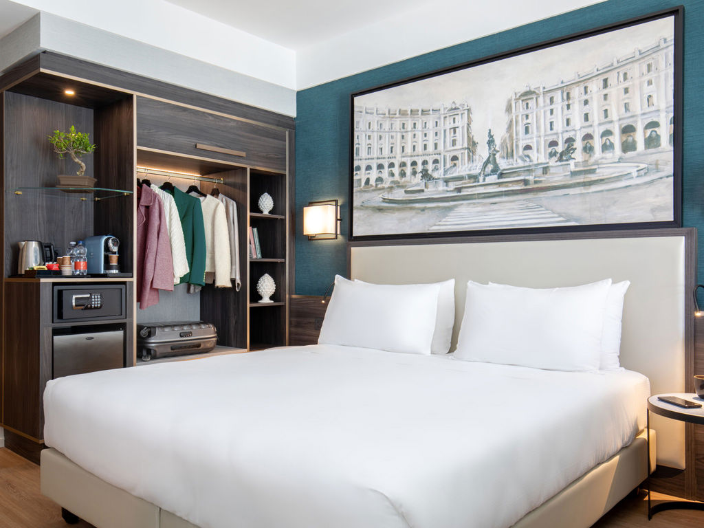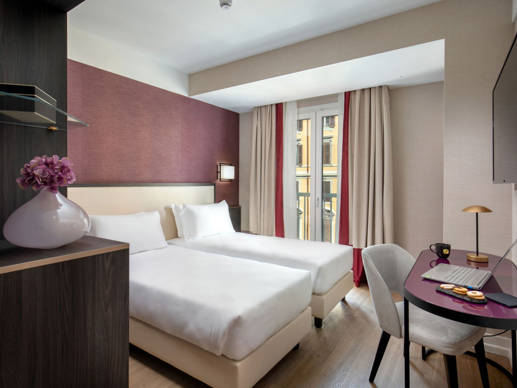 Camere Easy dai 13 ai 15 m² con arredamenti contemporanei e luminosi, ottima insonorizzazione, elegante sala da bagno con phon professionale e ampia doccia è l'ideale per il tuo soggiorno di lavoro o di vacanza.