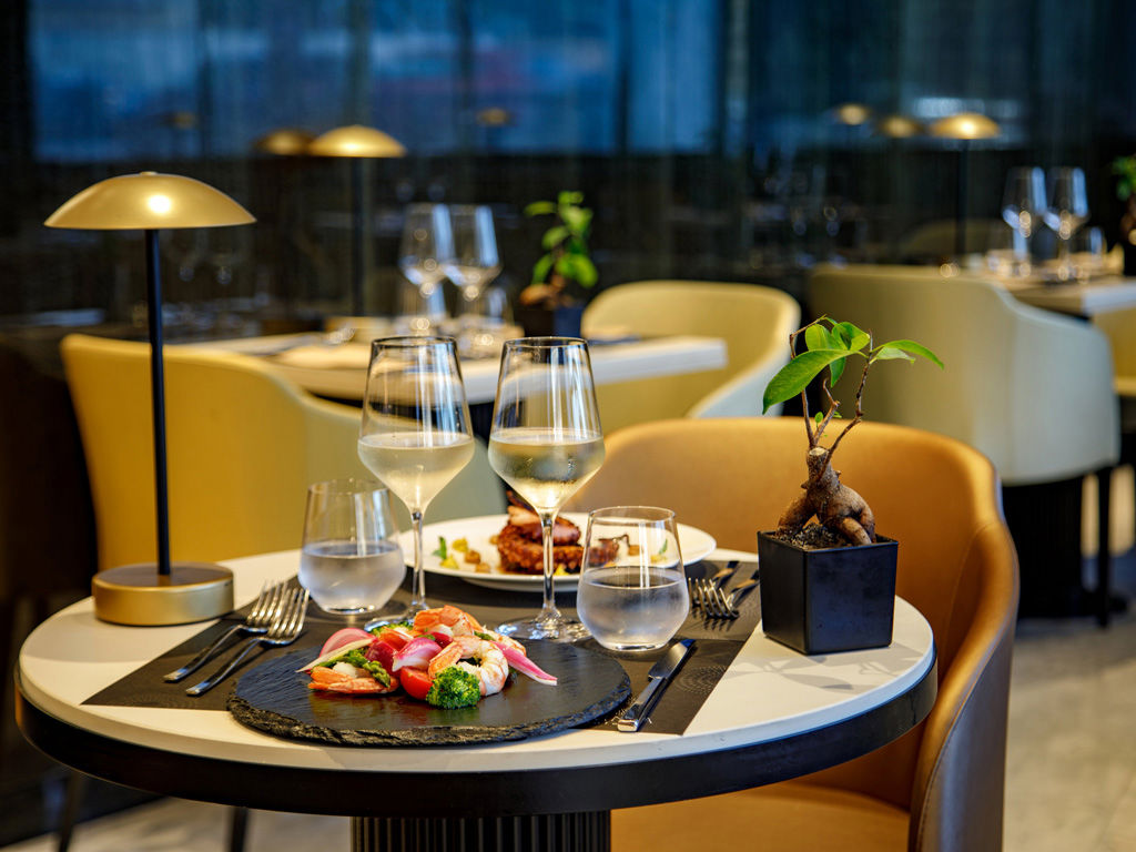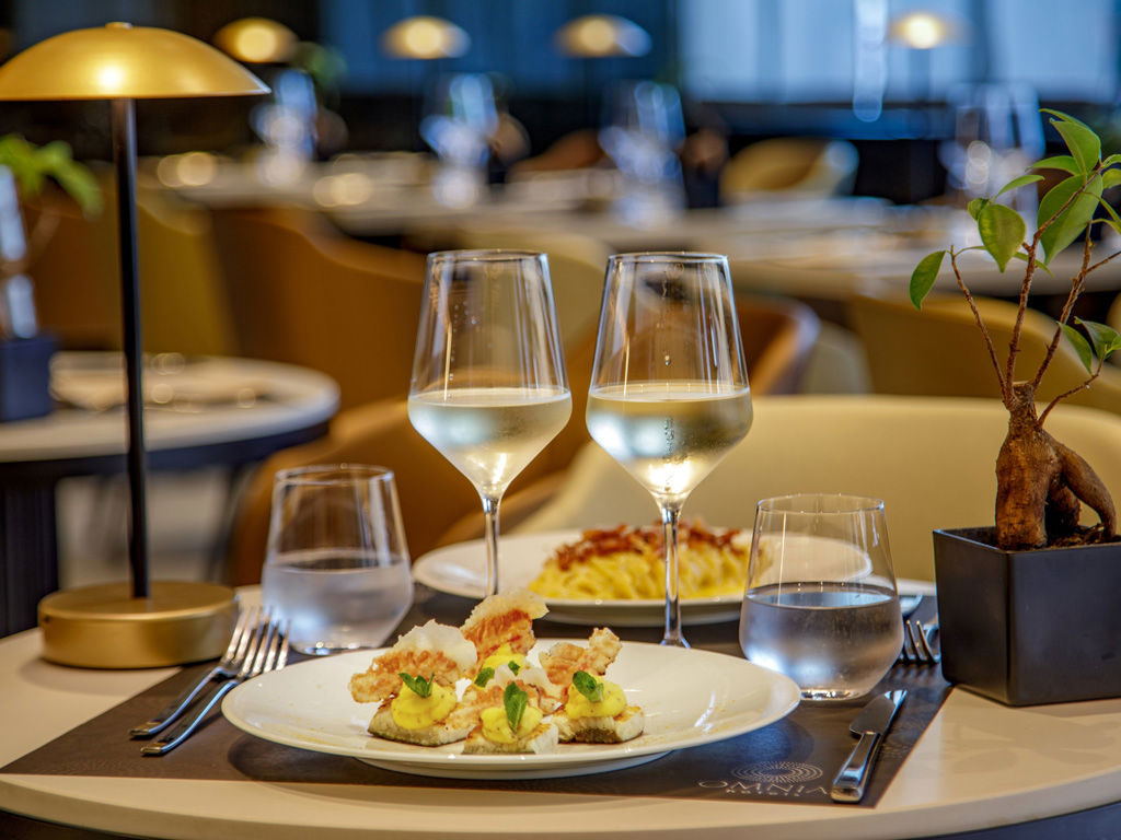 Al Sidus Cafè, l'atmosfera intima ed elegante è illuminata dal riflesso delle venature dorate sul bancone in marmo. Tra luci soffuse e dettagli di design, ogni momento dall'aperitivo raffinato alla cena più intima, diventa un'esperienza sensoriale, dove la cucina mediterranea reinterpretata dal nostro chef incontra stile, eleganza e calore.